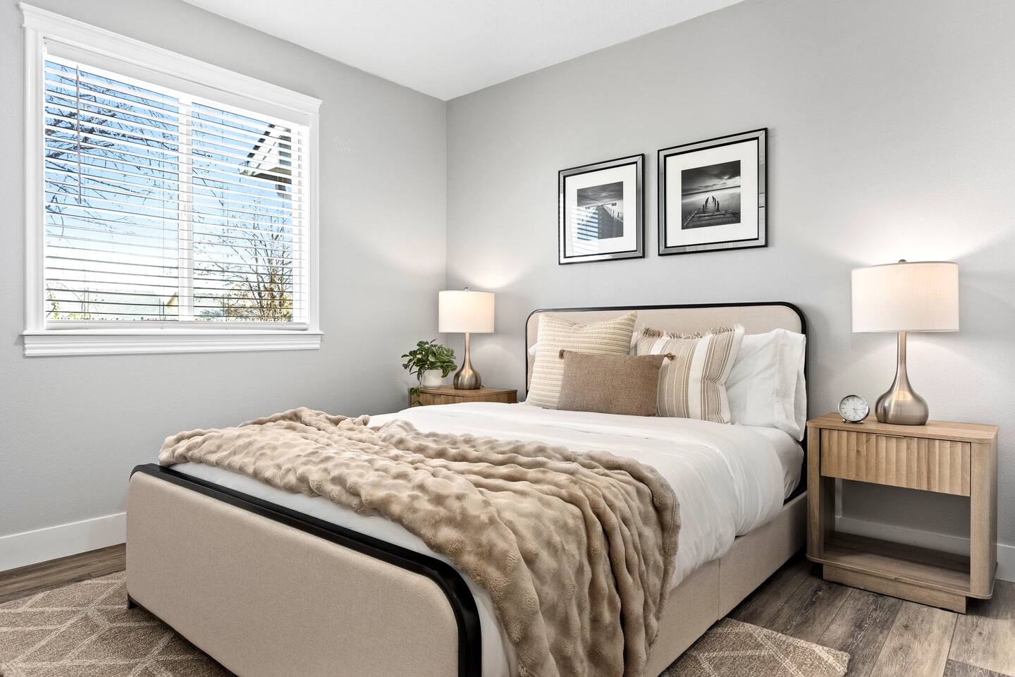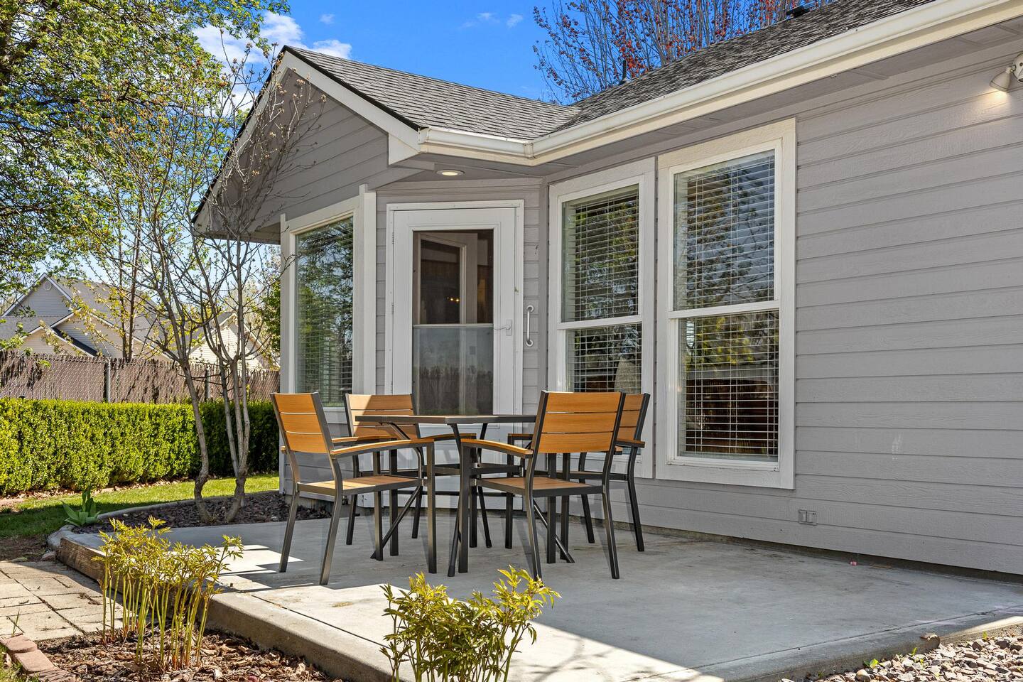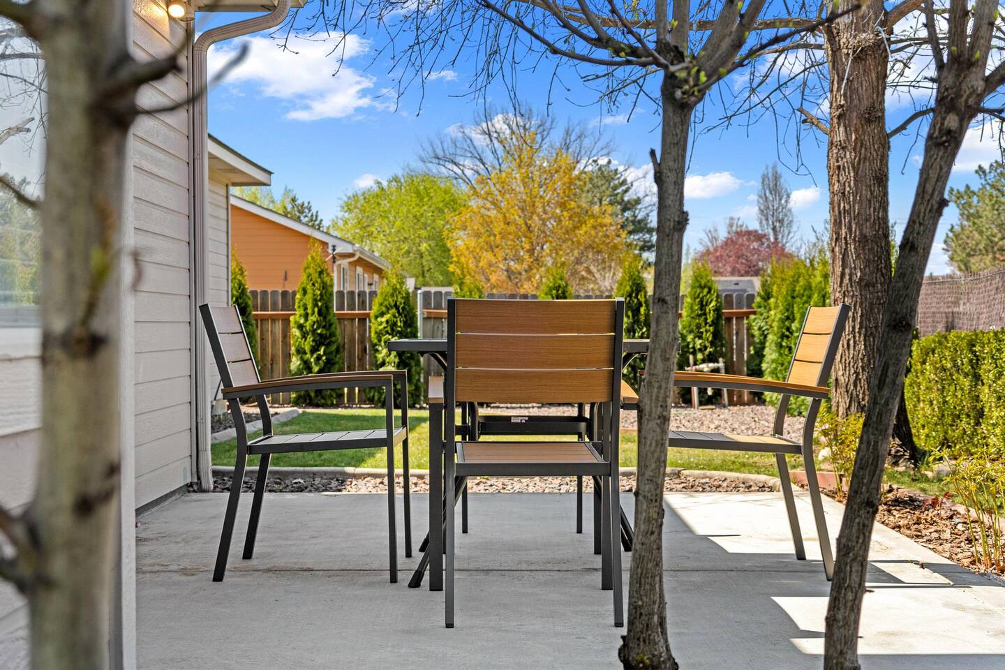 BEDROOMS Thoughtfully styled with comfortable mattresses, quality linens, and a calm, uncluttered atmosphere that helps you fully unwind and recharge. • Bedroom 1 – Primary suite, lux king bed, 60" TV, desk, Pack ’n Play • Bedroom 2 – Plush queen bed, dedicated desk • Bedroom 3 – Plush queen bed • Bedroom 4 – Plush queen bed, dedicated desk LIVING AREA The heart of the home — warm, open, and inviting. Perfect for relaxing by the fire, hosting movie nights, or enjoying time together without feeling crowded. • Spacious open-concept layout • Seating for 8 • Gas fireplace • Large Smart Roku TV (65") KITCHEN Designed for guests who truly enjoy cooking, with generous prep space and everything needed to prepare meals comfortably. • Fully stocked and thoughtfully equipped • Ample counter space • Essential small appliances DINING AREA An ideal setup for shared meals, celebrations, casual breakfasts, or late-night conversations. • Dining table seating 6–8 • Kitchen island with 4 bar stools WORKSPACE Quiet, reliable, and business-ready — perfect for remote professionals or extended stays. • Three dedicated desks (Primary Suite, Bedroom 2 & Bedroom 4) • Utra-fast Wi-Fi GARAGE & PARKING Easy-access parking designed for simplicity and convenience. • Garage accommodates 1 vehicle • Driveway accommodates 2 vehicles ENTERTAINMENT Enjoy friendly competition and memorable evenings without leaving the property. • Basketball arcade game (garage) • Foosball table (garage) • Family board games stored in the pantry BACKYARD A peaceful outdoor space to step outside, enjoy fresh air, and unwind at the end of the day. PRIME CENTRAL LOCATION: ✔ Quiet, safe neighborhood near Scheels ✔ Ten mimutes from The Village at Meridian ✔ Located between Boise, Eagle, Nampa, Kuna, Star, and Caldwell ✔ Minutes from restaurants, shopping, groceries, and attractions ✔ Quick drive to Boise Airport (BOI) Love it? Tap the 🧡 Save button in the top right corner so you can easily find us again before your dates get booked. 💬 Message us anytime with questions — we’re local and happy to help you plan your trip and make sure your stay is comfortable, stress-free, and memorable.