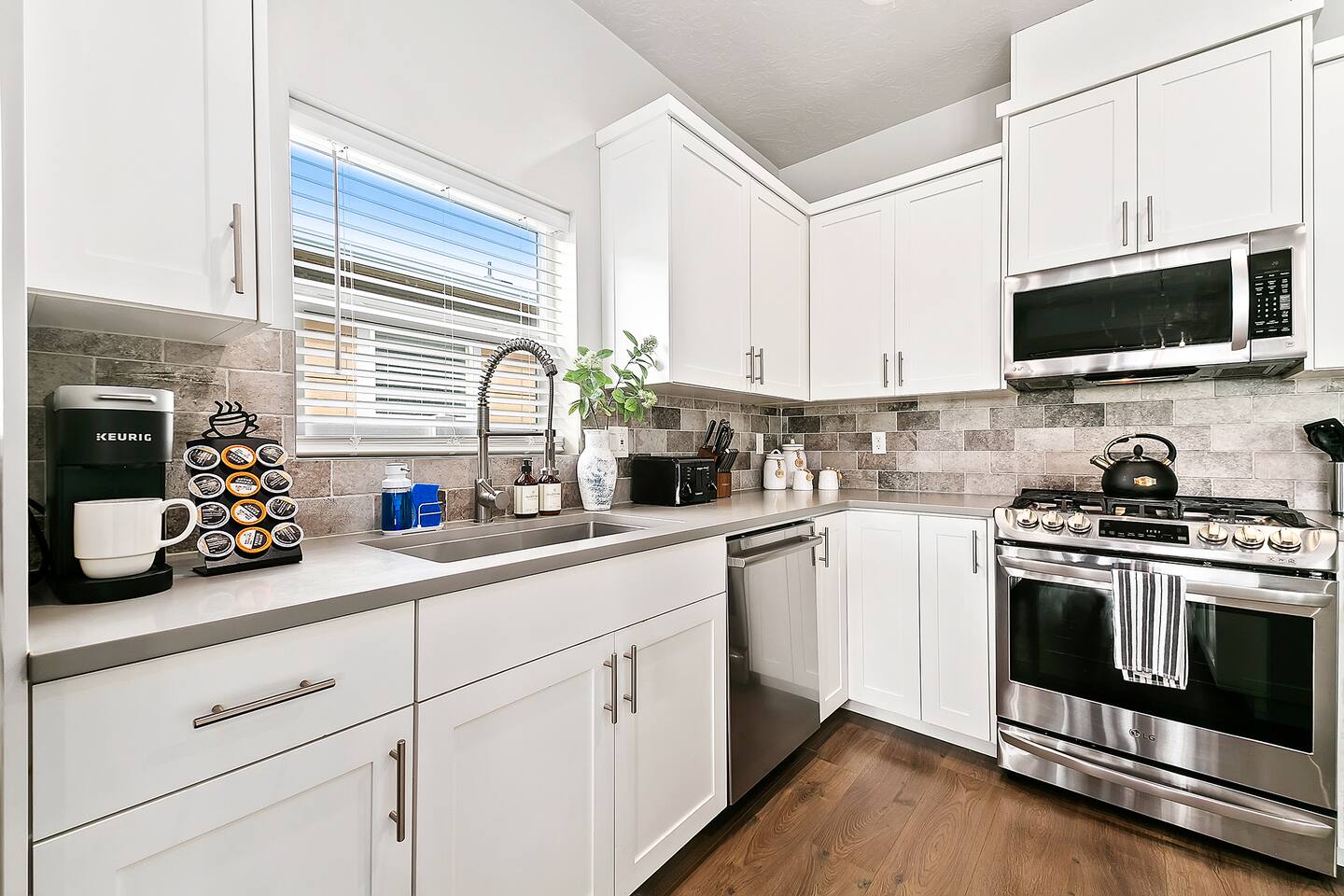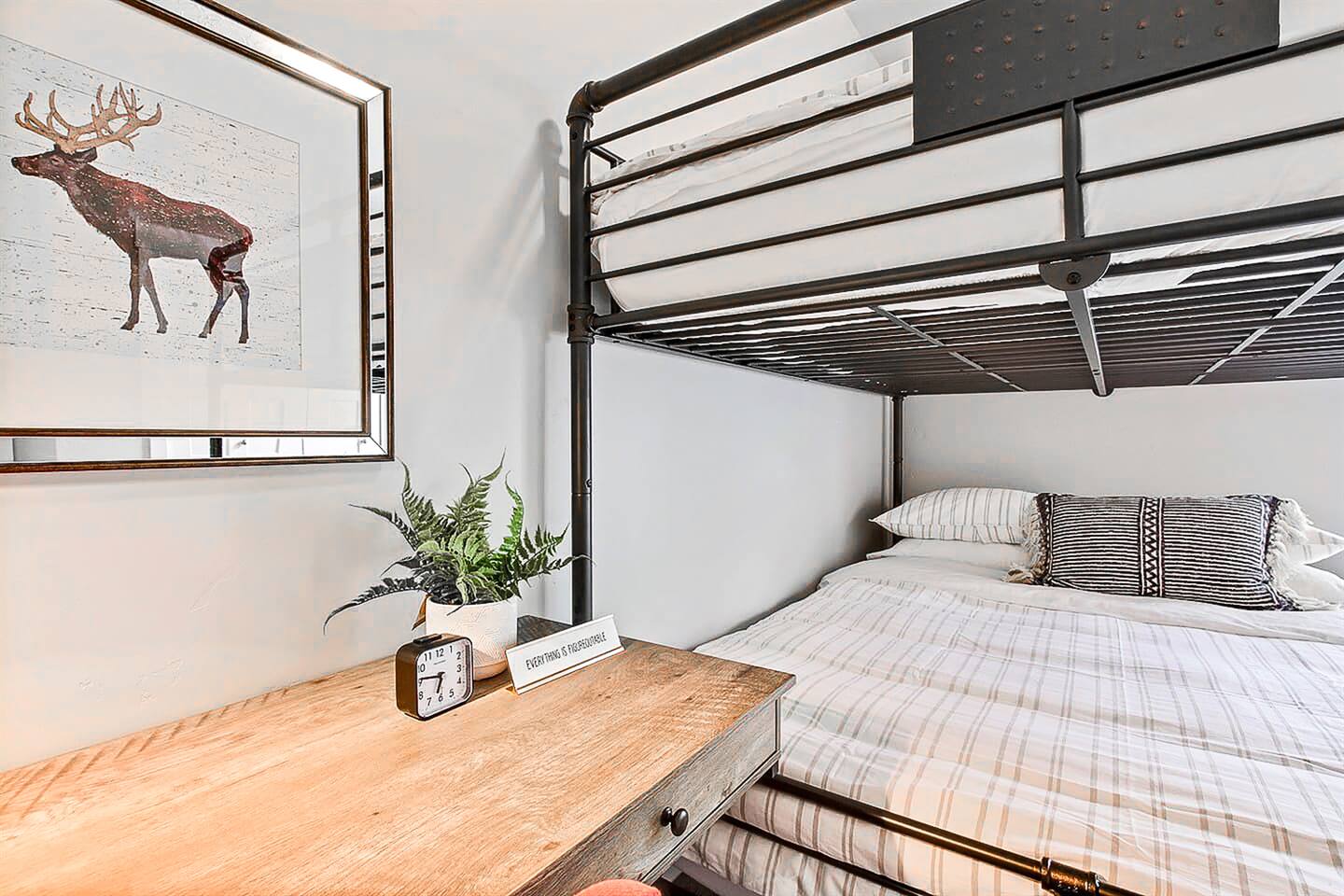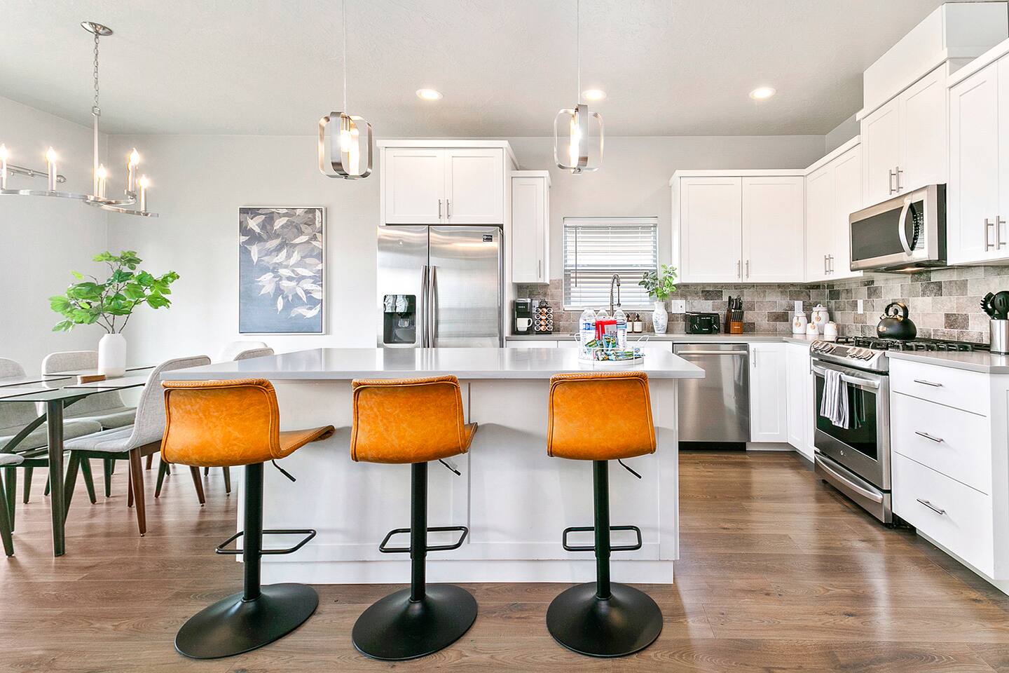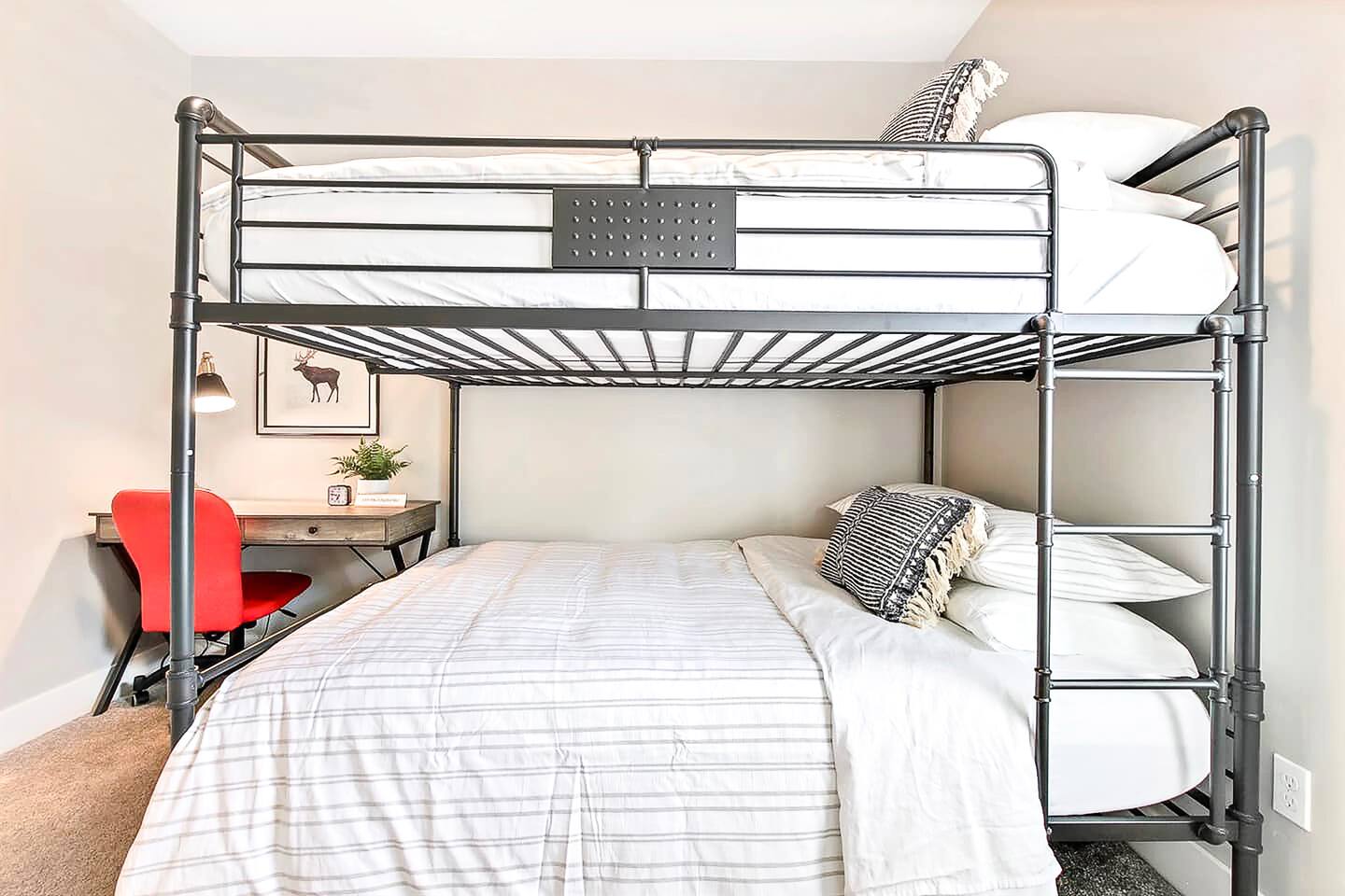 SLEEPING ACCOMMODATIONS (8-10 guests): Bedroom 1 (Suite) - King bed, pack-&-play Bedroom 2 - Queen bed Bedroom 3 - Queen-over-Queen bunkbed Living Room - Queen self-inflatable air mattress NOTE: Queen self-inflatable air mattress provided for groups of 9-10 BEDROOMS: Each of our three bedrooms provides high-quality, comfortable mattresses that provide a right level of support and firmness, ensuring you have a restful sleep experience. Carefully selected soft and supportive pillows with varying level of firmness to accommodate different sleeping preferences. Crisp and clean linens, soft sheets, and cozy duvets for enhanced comfort and inviting atmosphere. For your infant we have included a pack-&-play crib with mattress and sheets, and blanket, as well as a new highchair with tray and a basket of toys. Adequate storage space will allow you to neatly organize their belongings during their stay. Additionally, master bedroom equipped with large 60β Smart Roku TV, and the split bedroom design offers privacy. KITCHEN/DINING: In the comfort of this home, you will find a fully stocked kitchen with every necessity provided to make delicious home-cooked meals, including baking supplies. This includes an electric tea kettle, toaster, Keurig coffee machine, K-cups, every imaginable utensil, cutting boards, mixing bowls, baking sheets and dishes, pots and pans, a full set of dinnerware, childrenβs dishes, kitchen towels, paper towels, cleaning supplies, and various spices and other necessities in the cupboard. The dining area comfortably seats 9 people: 6 at the dining table and 3 at the kitchen island. Enjoy complimentary tea, coffee, and a 'welcome' snack tray. LIVING AREA: A large 65" Smart Roku TV is available in the living room, along with high-speed Wi-Fi Internet and access to all your streaming channels! Additionally, there's a dedicated workspace equipped with a desk, office chair, lamp, and ample natural light from the windows. In one of the closets, you will find a stack of family-friendly board games. GARAGE: 21' wide x 18' deep will accommodate 2 vehicles. SUPPLIES: Whether you book for one day or a month, and regardless of whether you're staying alone or with the maximum number of guests allowed by house rules, the same limited supply of kitchen, bathroom, and laundry essentials will be provided. However, these will not be replenished during your stay. We recommend bringing any additional personal or specific items you regularly use with you. NEIGHBORHOOD: The house is nestled on a kid-friendly private street within a quiet and safe neighborhood in central Meridian. Just minutes from highway I-84, it offers quick and easy access to Boise, Eagle, Nampa, Kuna, and Garden City. Within walking distance, you'll find Fred Meyer supermarket, Walgreens, and a variety of small restaurants and shops. Kleiner Memorial Park is conveniently located just five minutes away, situated across from The Village at Meridian, the area's most popular shopping, dining, and entertainment destination. The park offers a wide selection of activities for individuals and families to enjoy. Meanwhile, The Village features upscale apparel and specialty retail stores, as well as fine dining options like Texas de Brazil, Kona Grill, and Yard House. Visitors can also explore cafes, Big Al's bowling alley, arcade games, a cinema, and enjoy seasonal concerts and an ice rink. Designed with European-style architecture, The Village streets surround a park setting complete with a children's play area and a choreographed fountain offering hourly shows. Eagle Road, a high-density commercial strip, offers abundant shopping, dining, and amenities. Here, you'll find chain retailers such as Target, Bed Bath & Beyond, World Market, Lowe's, and major grocery stores like Albertsons Marketplace, Trader Joe's, and the local favorite Boise Co-op specializing in organic and GMO-free foods. The strip is abundant with eateries from fast-food favorites such as In-n-Out, Chick-fil-A, Dave's Hot Chicken, Costa Vida, Freddy's, and The Habit to fine dining at Land Ocean, Hook & Real, Crave Kitchen & Bar, and Coyne's Restaurant & Bar. FAMILY FUN: The seasonal Roaring Springs Water Parkβranked the nation's eighth-bestβfeatures slides, rides, wave pools, and attractions for all ages. Year-round excitement awaits at Wahooz Family Entertainment Zone, offering laser tag, an indoor ropes course, virtual reality, arcade games, bumper cars, outdoor mini golf, and bumper boats. The newly opened Top Golf facility is also just minutes away. Boise historic downtown is only 20 minutes away and has something for everyone. Visitors will find boutique shops, fine dining, theaters, zoo, discovery center, breweries, parks, coffee shops, pedestrian and bike friendly Boise River greenbelt, night life and lots of other activities. GETTING AROUND: Transportation could be accomplished by Uber or Lift, but a car is recommended. Restaurants ~ 5 min Shopping ~ 5 min Grocery ~ 5 min The Village at Meridian ~ 5 min Big Al's Bowling, Arcade, and Sports Bar - 5 min Vertical View Climbing Gym ~ 7 min St. Lukes Hospital ~ 9 min Wahooz Family Fun Zone ~ 8 min Top Golf ~ 10 min Roaring Springs Water Park ~ 11 min Boise River Greenbelt ~ 10 min Airport ~ 17 min Boise Downtown ~ 20 min Lucky Peak Reservoir ~ 26 min Hiking, skiing, rock climbing ~ 20-45 min St. Chapelle Winery ~ 39 min The Springs (Idaho City) ~ 60 min Bogus Basin Ski Resort ~ 60 min Lake Cascade ~ 1 hr 30 min Tamarack Ski Resort ~ 2 hrs 17 min McCall, ID ~ 2 hrs 21 min Sun Valley, ID ~ 2 hrs 52 min